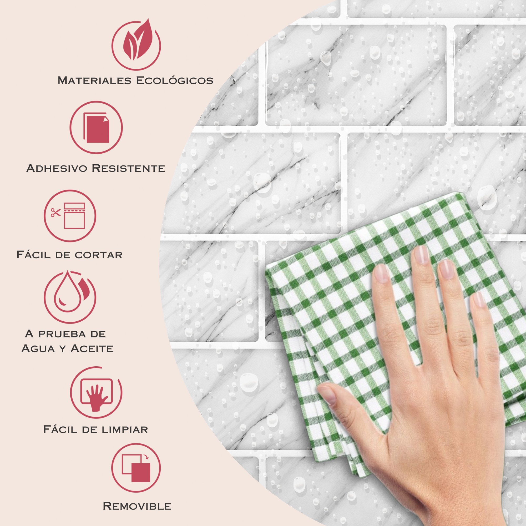 - Instalación sin obra: se adhieren fácilmente sobre azulejos o superficies lisas, sin necesidad de herramientas.